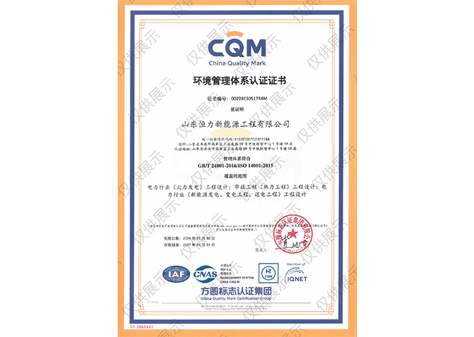 環(huán)境管理體系認(rèn)證證書 GB/T 24001-2016/ISO14001:2015