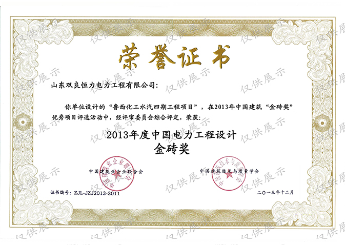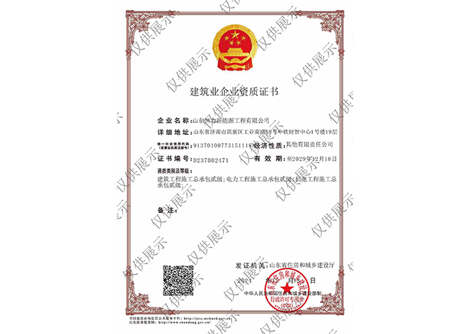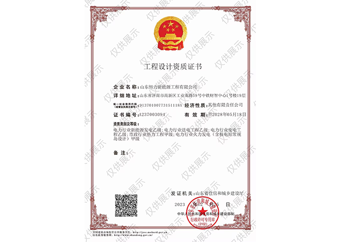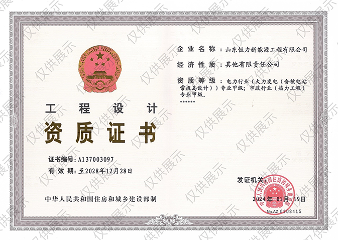 工程設(shè)計(jì)資質(zhì)證書:電力行業(yè)(火力發(fā)電(含核電站常規(guī)島設(shè)計(jì))專業(yè)甲級(jí);市政行業(yè)(熱力工程)專業(yè)甲級(jí)