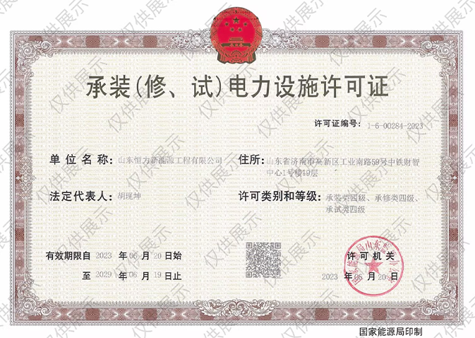 承裝(修、試)電力設(shè)施許可證