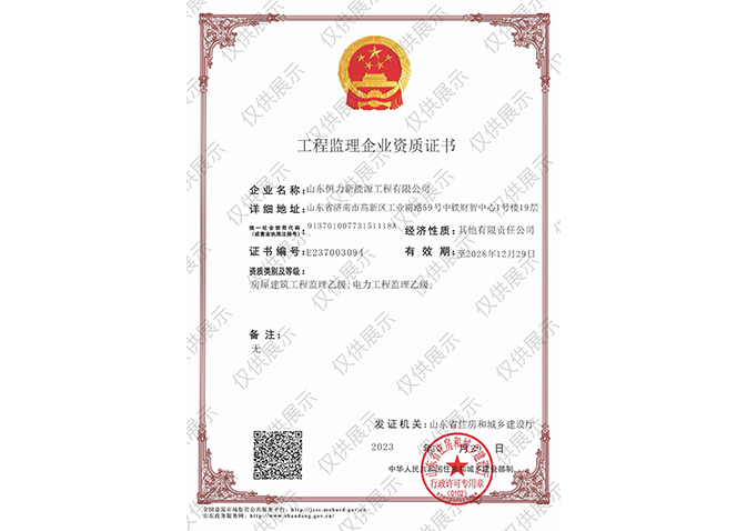 工程監(jiān)理企業(yè)資質(zhì)證書:房屋建筑工程監(jiān)理乙級(jí);電力工程監(jiān)理乙級(jí)