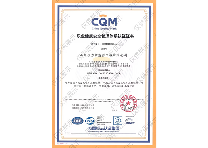 職業(yè)健康安全管理體系認(rèn)證證書GB/T 45001-2020/ISO 45001:2018